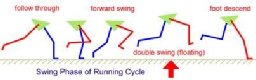 Normal walking or running patterns are divided into a number of phases. There is a Stance + Swing Phase for each leg during each walking or running cycle. Walking or running speed is determined by the number of cycles x stride length. There are minor differences between walking and running but mostly in terms of timing, speed and magnitude of force used