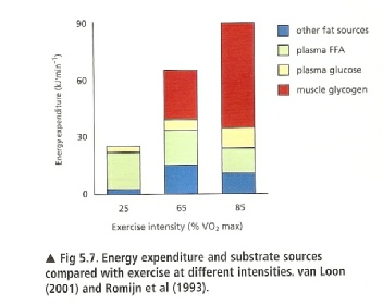 instant energy (phosphocreatine) system being used. At lower intensity of exercise amount of