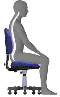 There are a number of factors which determine this position including seat height, seat depth, seat angle muscle tightness and weakness etc. At the other end of the spine the head position, eye level, and the objects being looked at all impact on the seated posture. If the pelvis rolls backwards into posterior tilt then the lumber spine must become flexed. This is a stressful position for the tissues, especially the discs and should be avoided for very prolonged periods.