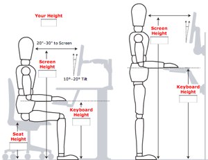 In the best circumstances both the desk and the chair used are adjustable in height. Where this is the case the chair adjustments are made first and then the desk adjusted to the appropriate height for the seated worker. The more common situation is where the desk height is fixed and ergonomic principles are applied to the workstation in order to make it as safe and effective as possible.